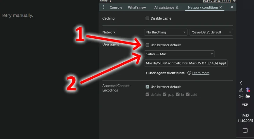 A User-Agent is a technical “business card” your browser sends to the website, identifying the platform you are using. In most modern browsers, you can change it directly through the built-in developer tools — without installing extensions or restarting your browser.